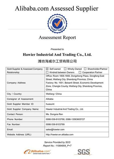 潍坊海威尔工贸有限公司 电话/传真:0086-536-6287117 电话 :0086-536-6103787/88 传真 :0086-536-6103789 邮箱: sales@hawier.com